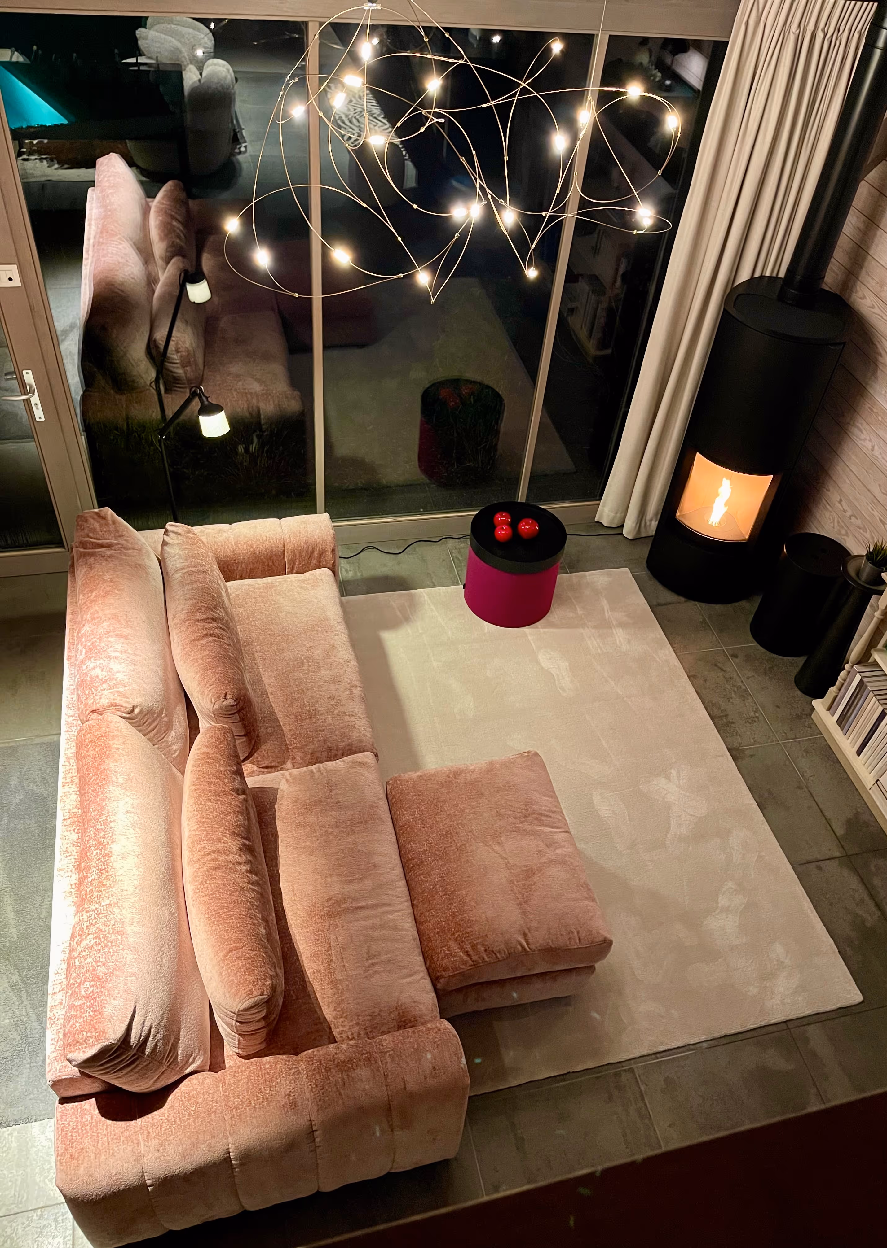 Pensée pour le confort et la détente, cette suite élégante accueille deux personnes dans un cadre chaleureux et raffiné. Vous y trouverez un lit boxspring kingsize, un séjour cosy avec canapé en velours, poêle à pellets design et télévision à la demande, ainsi qu’une enceinte Bluetooth B&O pour créer l’ambiance de votre choix.